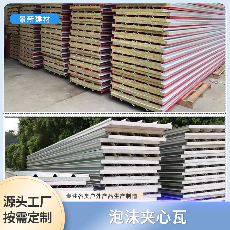 彩钢瓦夹芯防火岩棉板泡沫板瓦楞板隔墙活动板房外墙围挡保温50mm